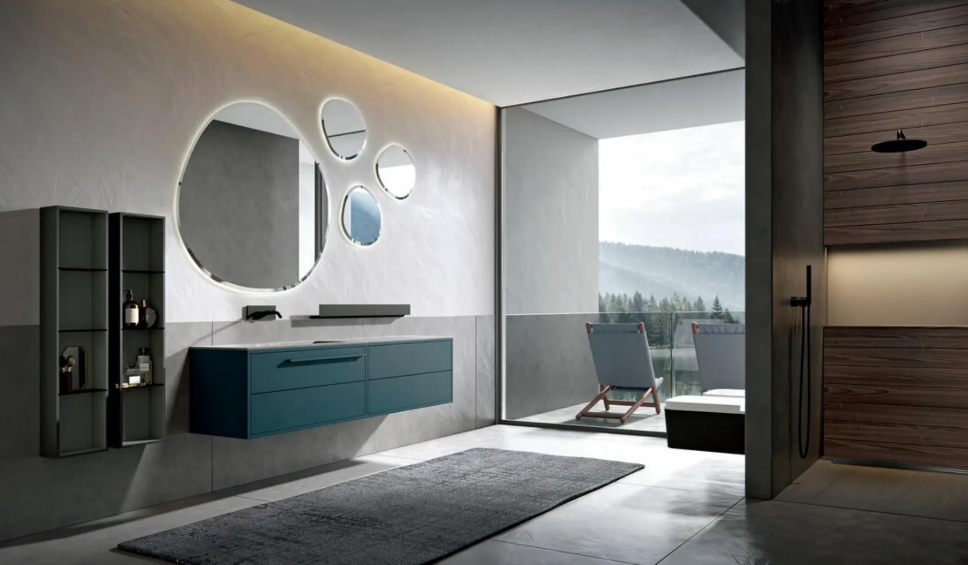 Mobili bagno sospesi in laccato opaco del brand Edoné: clicca e scopri l'arredo bagno moderno Ade 003 per la stanza del benessere.