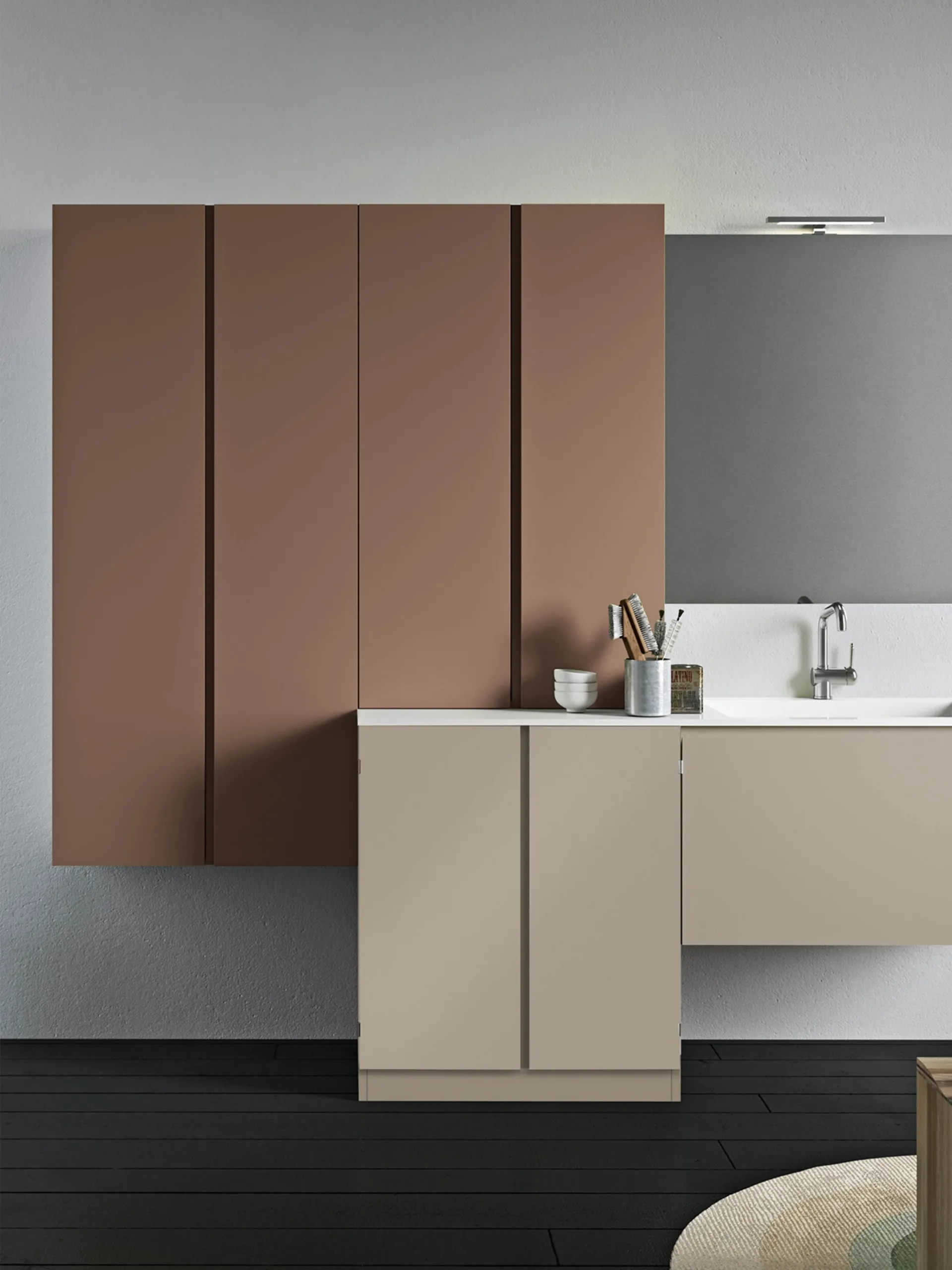 Mobili bagno per lavanderia Idrobox 12 di Birex: scopri l'Arredo Bagno in laccato opaco moderno e arreda la stanza del benessere.