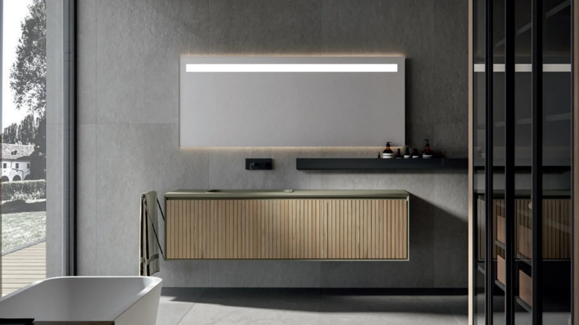 Arreda la stanza del benessere design alla perfezione con Facto 08, mobili bagno sospesi e oggetti in legno di Birex.