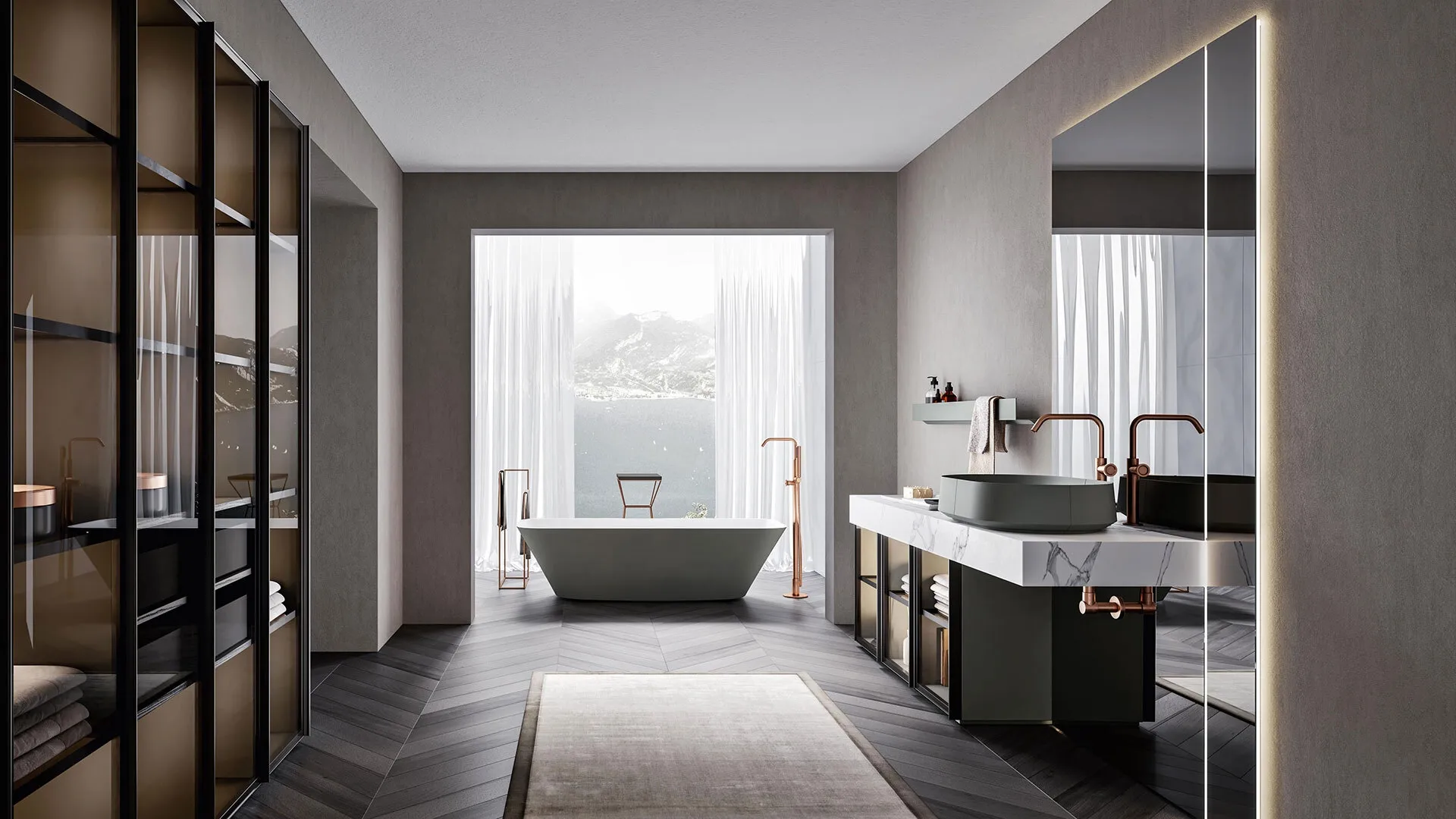Mobili bagno a terra in vetro del marchio Edoné: clicca e scopri l'arredo bagno design Rea 2313 per il tuo bagno.