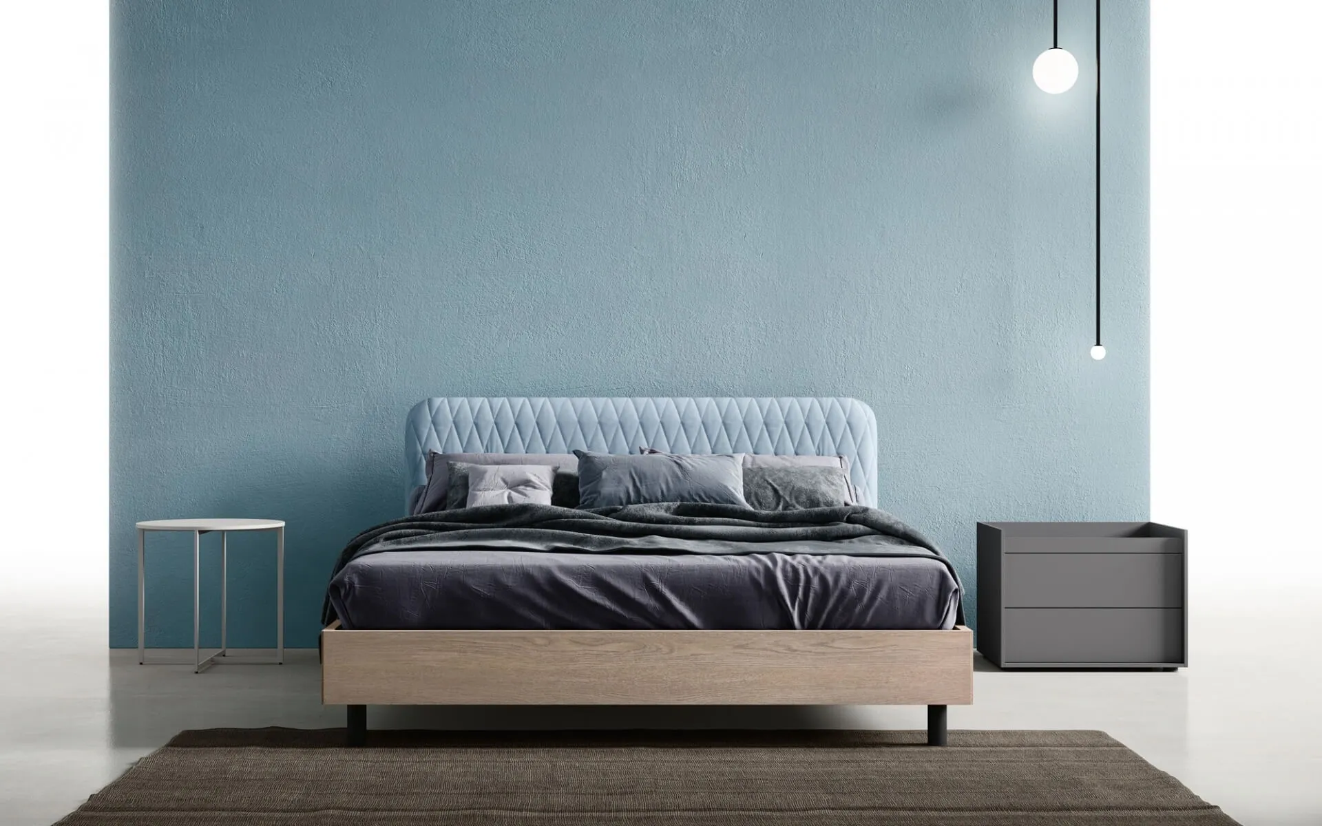 Se vuoi letti matrimoniali imbottiti, eccoti il modello Wing in tessuto per impreziosire la zona notte.