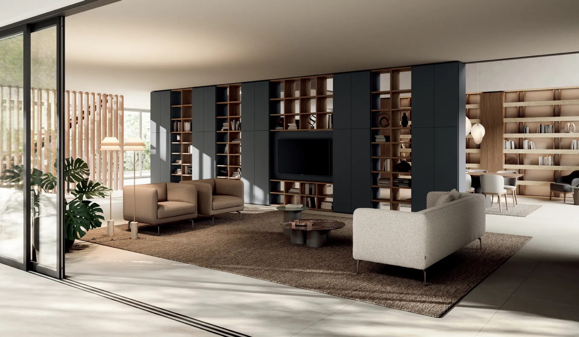 Finiture di pregio e linee decise: scopri la libreria Speed di Dall'Agnese tra le più originali Librerie design divisorie.