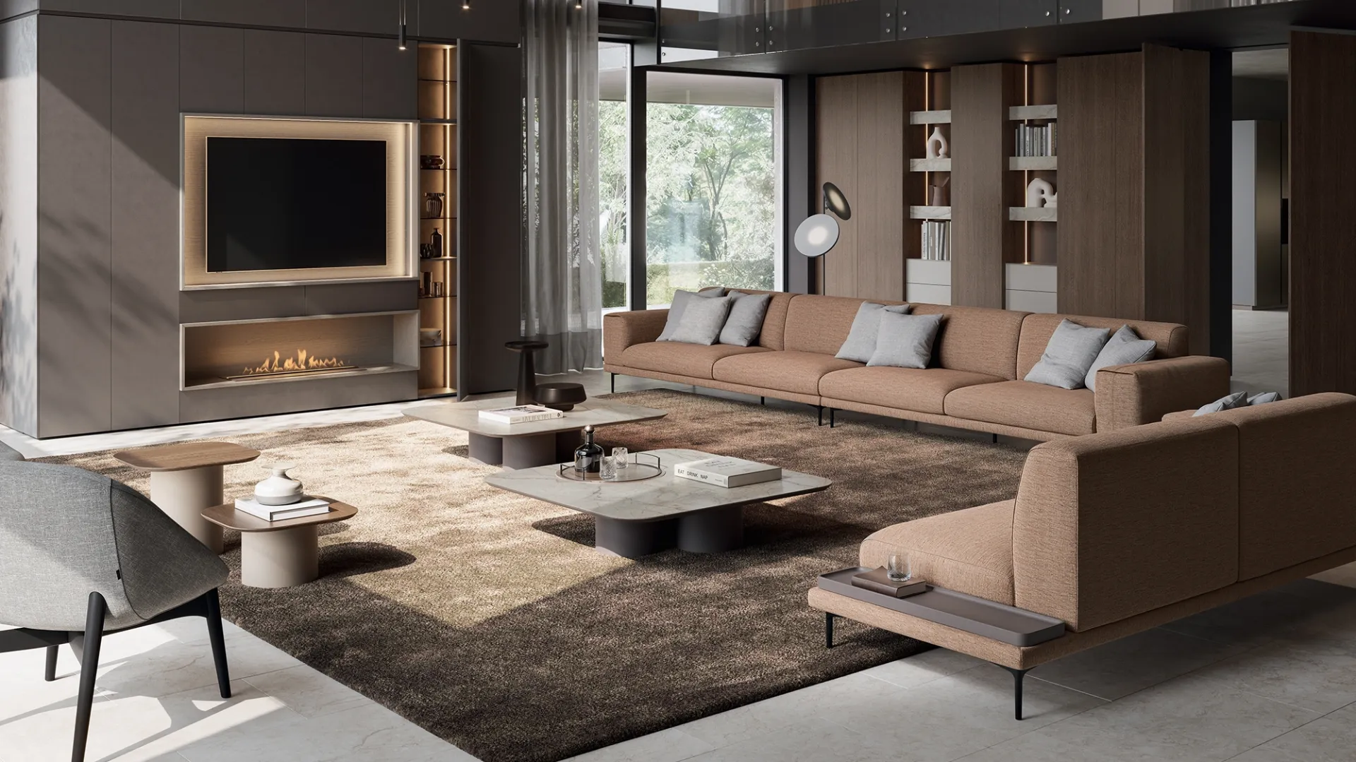 Pareti attrezzate e pensili Dall'Agnese: clicca e scopri il modello Slim con Camino e potrai valorizzare stanze moderne di ogni genere.