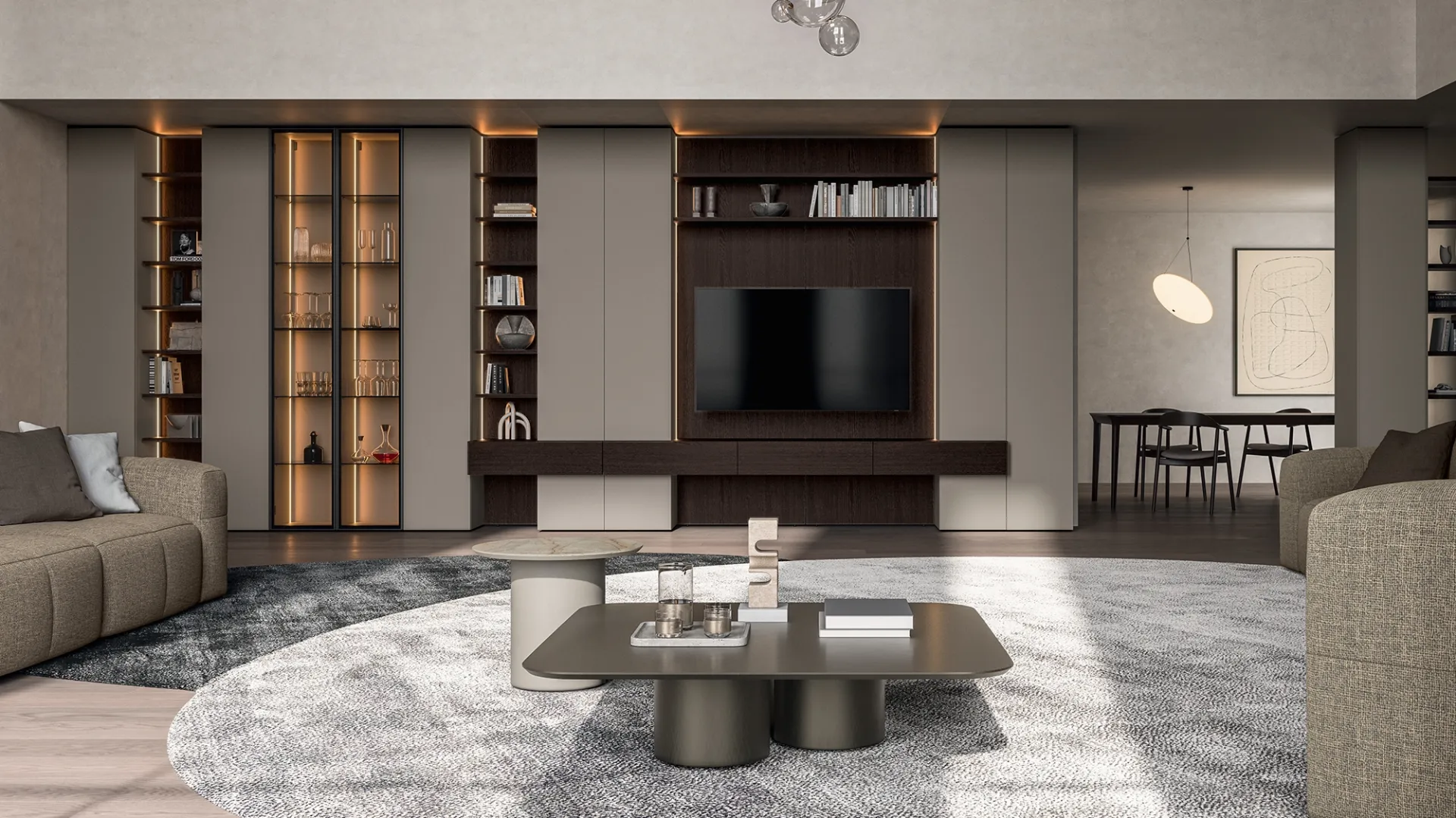 Se desideri mobili soggiorno e pareti attrezzate moderne, opta per il modello Slim Rovere e Laccato di Dall'Agnese: clicca e scopri di più!