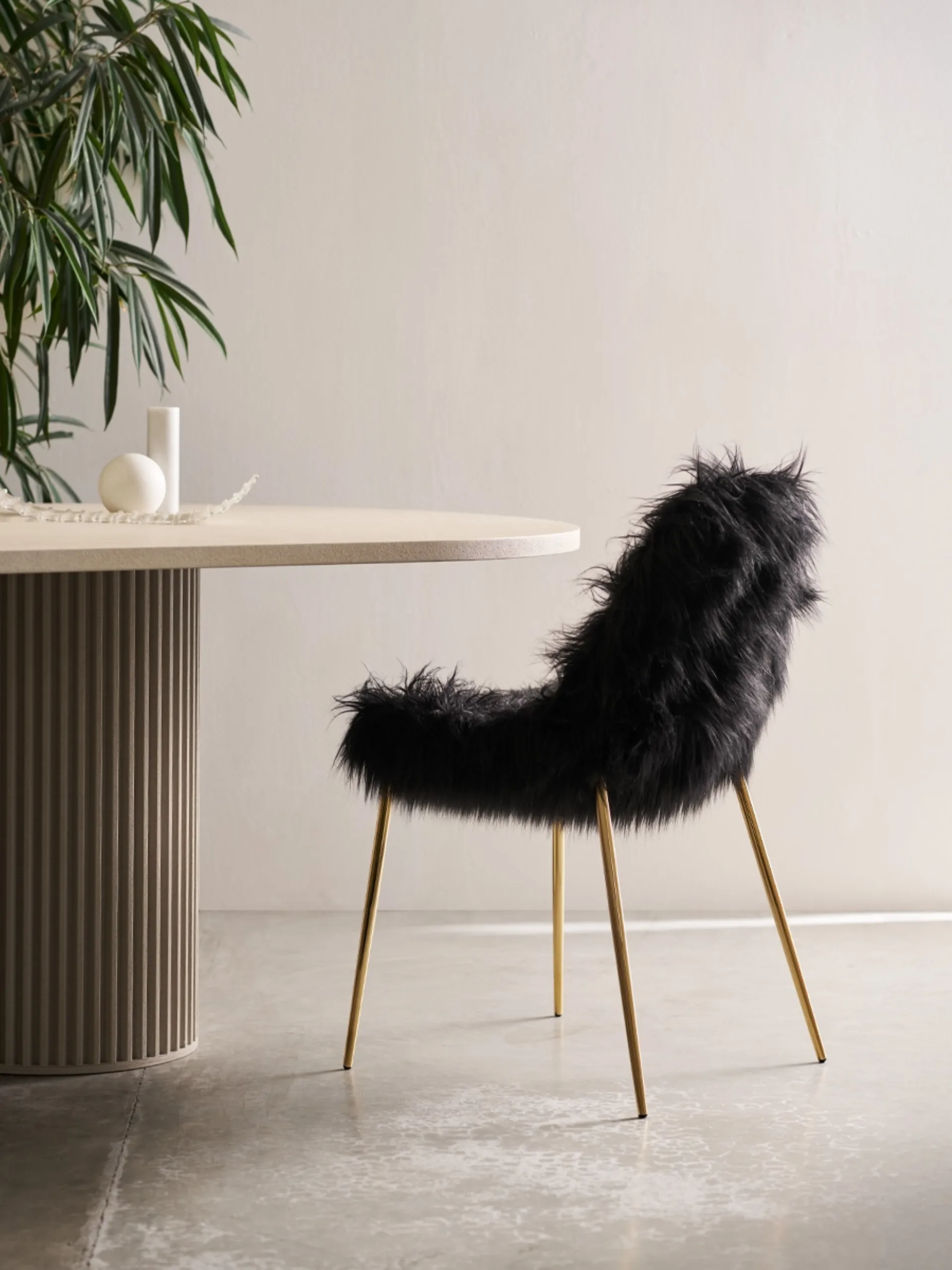 Durante la scelta dei mobili ed elementi accessori da pranzo per la propria casa è essenziale valutare le misure, le finiture e lo stile per trovare il modello che hai sempre desiderato. In showroom ti attende una ricca gamma di Arredamento Casa dei migliori produttori, tra cui potrai trovare anche varie Sedie fisse Opinion Ciatti. La scelta delle sedie è davvero essenziale: intorno al tavolo ci si riunisce ogni giorno per i pasti o per parlare con familiari e amici. Sedia Mammamia Fur in eco pelliccia di Opinion Ciatti: contattaci per informazioni e preventivi su una scelta praticamente infinita di sedute design in ecopelle, comode e belle.