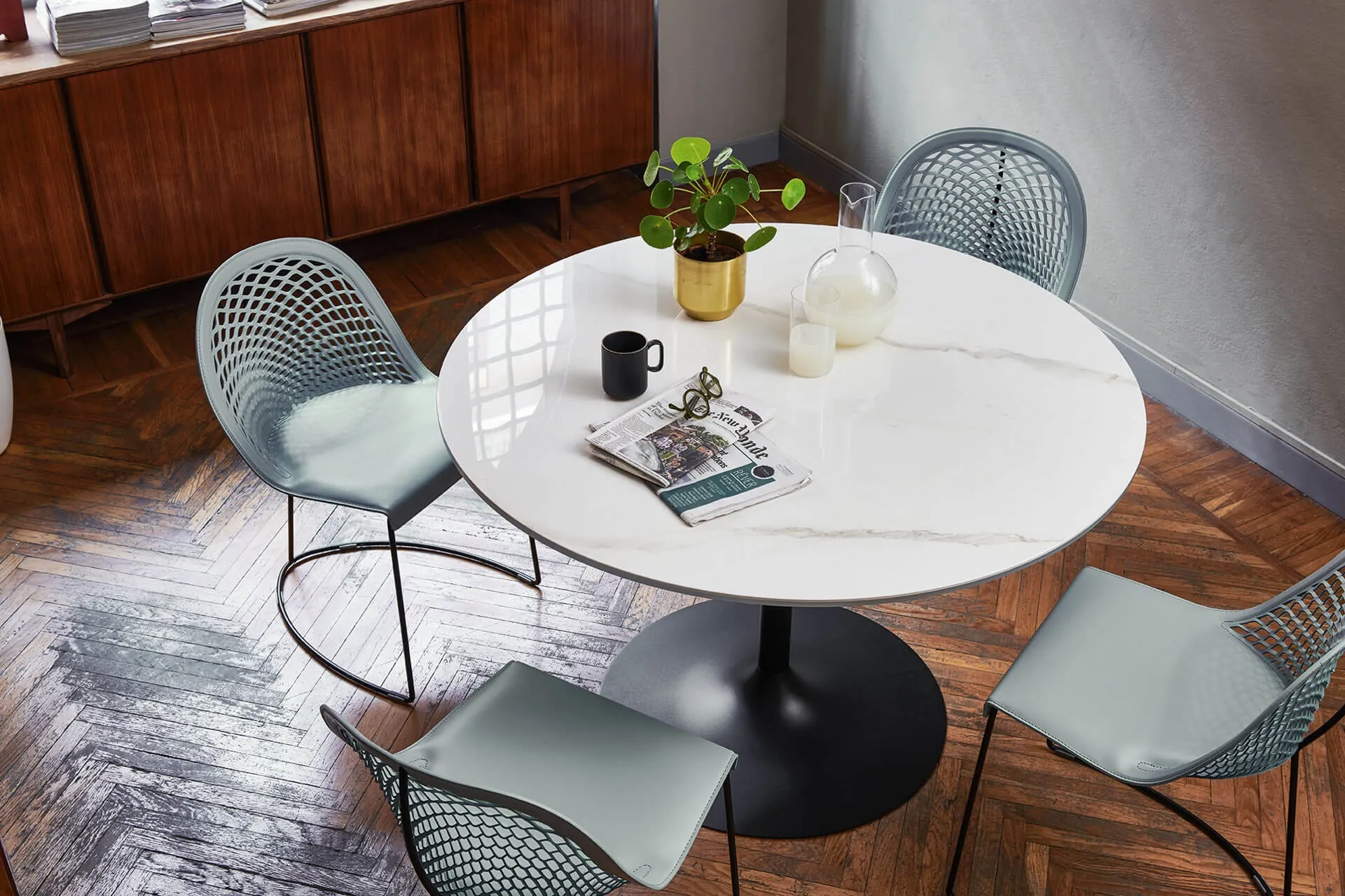 Con questa sedia Guapa Midj in cuoio, una delle nostre sedute fisse design, potrai impreziosire i tuoi spazi.