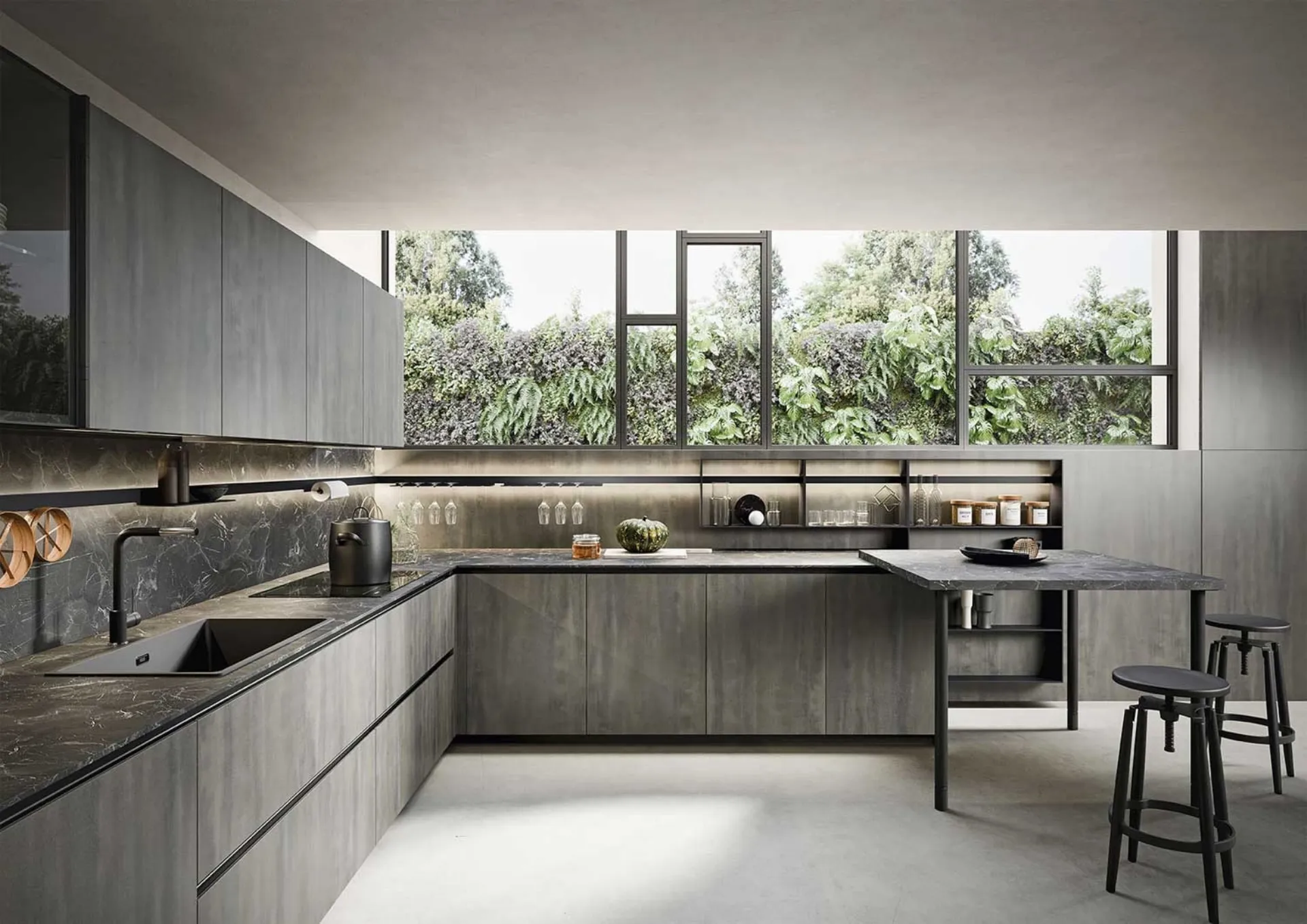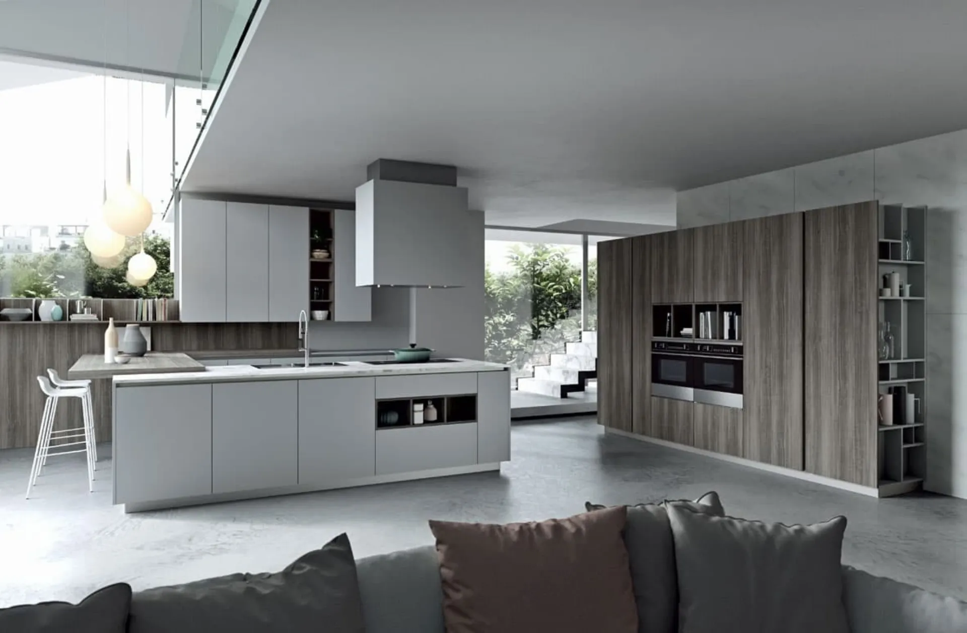 Cucine Moderne con penisola: clicca e scopri una ricca gamma di soluzioni del brand Dibiesse, tra cui il modello Emporio Lab con penisola.
